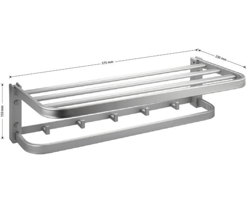 Полка для полотенца с опорой, большая, для ванной, привлекает своим современным дизайном, многофункциональностью и надежностью конструкции. Кухня, ванная, прихожая, кладовка или гардеробная - эта полка идеально подойдет везде. Металлическая полка оснащена дополнительной перекладиной. Безупречно отшлифованный алюминий с матовым покрытием делает её устойчивой к влаге и исключает появление ржавчины. Полка для ванной функциональное и практичное решение для любого интерьера. Материал изготовления — алюминий. Матовое покрытие очень стойко переносит истирания и обеспечивает идеальный вид изделия изделия. Идеально подойдет не только для ванной, но и для кухни. Изделие крепится к стене с помощью дюбелей и саморезов (входят в комплект). Габаритные размеры: длина 575 мм, глубина 230 мм, высота 150 мм. Вес - 1.4 кг, объём - 0,013 м3.