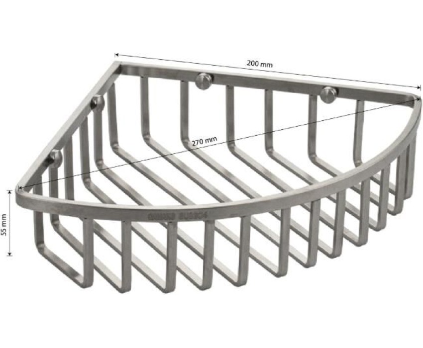 Полочка угловая, овальная, однаэтажная, для принадлежностей, решётка с плоскими толстыми прутьями, обладает высокими эксплуатационными характеристиками и подходит для использования дома, в общественных местах: отелях, ресторанах и пр. Изготовлена из прочной нержавеющей стали с матовым покрытием, которое придает безупречный внешний вид и долговечность. Аксессуар не занимает много места, надежно фиксируется к стене при помощи набора креплений (входят в комплект) и служит удобным местом для хранения бытовых и косметических средств. Габаритные размеры: высота 55 мм, ширина 270 мм, глубина 200 мм. Вес - 0,600 кг, объём - 0,00348 м3.