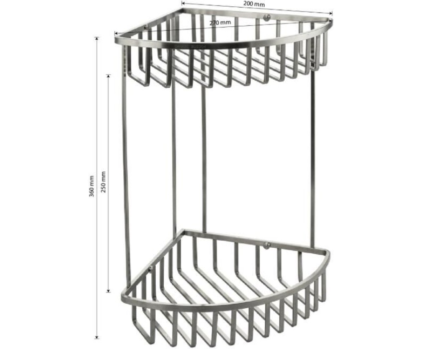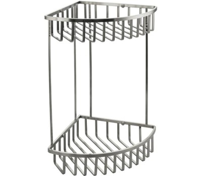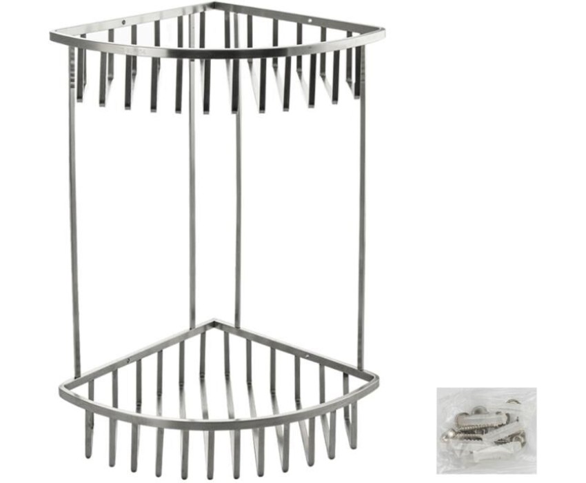 Полочка угловая, овальная, двухэтажная, для принадлежностей, решётка с плоскими толстыми прутьями, обладает высокими эксплуатационными характеристиками и подходит для использования дома, в общественных местах: отелях, ресторанах и пр. Изготовлена из прочной нержавеющей стали с матовым покрытием, которое придает безупречный внешний вид и долговечность. Аксессуар не занимает много места, надежно фиксируется к стене при помощи набора креплений (входят в комплект) и служит удобным местом для хранения бытовых и косметических средств. Габаритные размеры: высота 360 мм, ширина 270 мм, глубина 200 мм, расстояние между полками 250 мм. Вес - 1,200 кг, объём - 0,01020 м3.