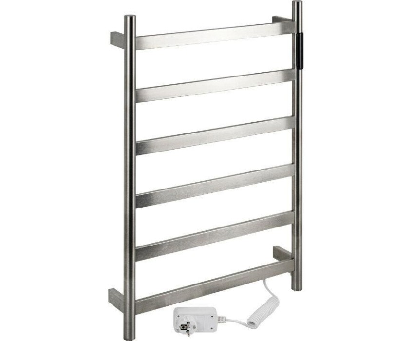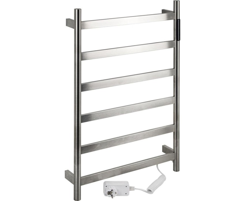 Полотенцесушитель электрический KRAFTTE 44044 ХРОМ, матовый, ЛЕСЕНКА, 480 х 730 х 90 мм, на 6 перекладин, 75 W, 220V / 50 Hz, из нержавеющей стали, с