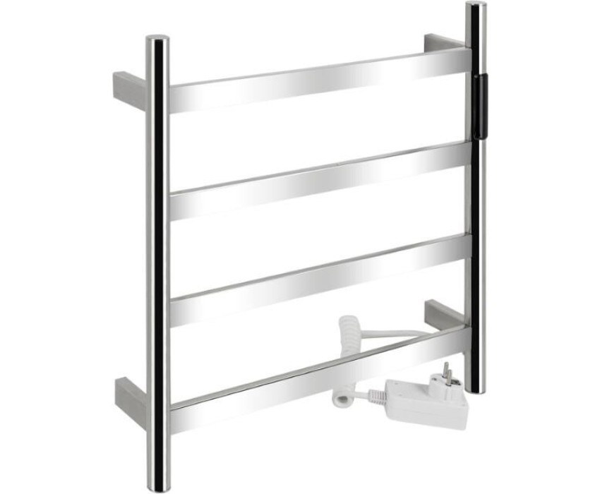 Полотенцесушитель электрический хромированный, лесенка из нержавеющей стали марки 304, сенсорное управление с таймером до 24 часов, регулировка температуры от 40°С до 60°С, тэн из углеродного волокна, гармонично впишется в современный интерьер и поможет поддержать комфортную атмосферу в ванной комнате, работает вне зависимости от отопительного сезона, и его можно разместить в любом месте ванной или даже на стене в комнате. Хромированная поверхность устойчива к высоким температурам. Благодаря продуманному расположению труб можно размещать объемный текстиль, сократив время просушки. Установка и ремонт не требуют работы сантехников. Габаритные размеры: ширина 475 мм, высота 505 мм, глубина 90 мм. 4 перекладины, с сухим ТЭНом, 75 Вт, 220-230 В, 50-60 Гц, t - 55°С, IP 44. Комплект: полотенцесушитель, крепёж, провод с евровилкой для подключения. Вес - 3,200 кг, объём - 0,04250 м3.