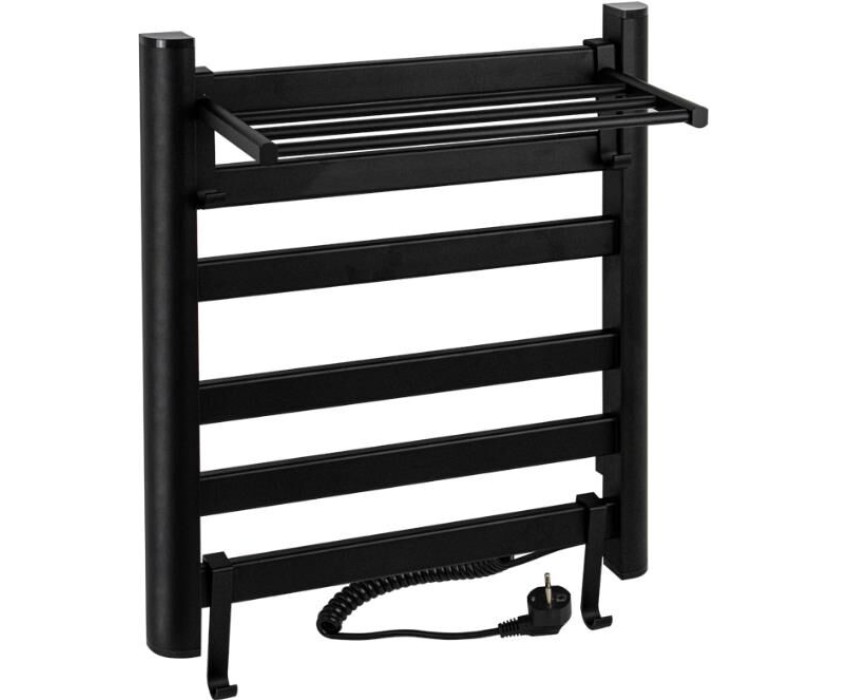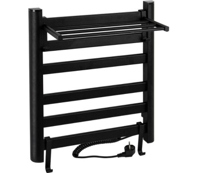 BRIMIX - Полотенцесушитель электрический, ЛЕСЕНКА с ПОЛКОЙ, 500 х 600 х 270 мм, 5 плоских перекладин, 135 W, из алюминия, цвет ЧЕРНЫЙ. 08091B