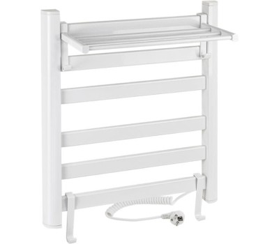 BRIMIX - Полотенцесушитель электрический, ЛЕСЕНКА с ПОЛКОЙ, 500 х 600 х 270 мм, 5 плоских перекладин, 135 W, из алюминия, цвет БЕЛЫЙ. 08091W