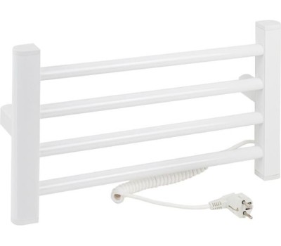 Полотенцесушитель электрический белый, лесенка, из алюминия, тэн из углеродного волокна гармонично впишется в современный интерьер и поможет поддержать комфортную атмосферу в ванной комнате, работает вне зависимости от отопительного сезона, и его можно разместить в любом месте ванной или даже на стене в комнате. Сверху нанесено белое полимерное покрытие, устойчивое к высоким температурам. Благодаря продуманному расположению труб можно размещать объемный текстиль, сократив время просушки. Установка и ремонт не требуют работы сантехников. Запуск - нажатием одной кнопки. Габаритные размеры: высота 300 мм, ширина 500 мм, глубина 90 мм. 4 перекладины, с сухим ТЭНом, 95 W, 220-240 V, 50-60 Гц, t - 55°С, IP 44. Комплект: полотенцесушитель, крепёж, провод с евровилкой для подключения. Вес - 2,000 кг, объём - 0,01800 м3.