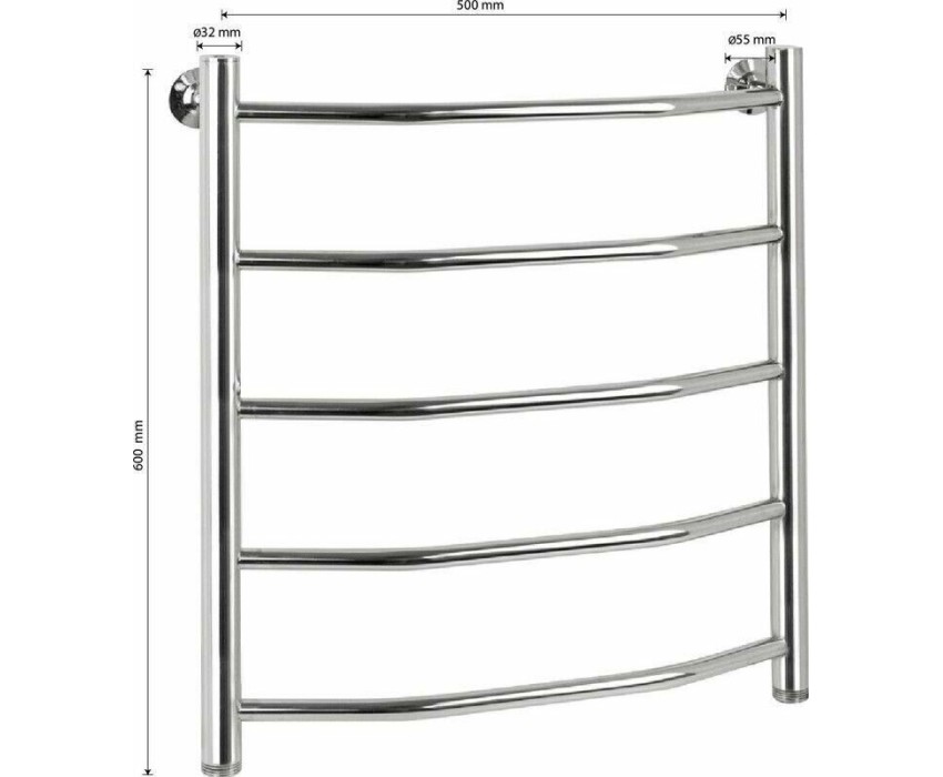 Водяной полотенцесушитель, хромированный, лесенка - трапеция, изготовлен из высокопрочной нержавеющей стали. Металл устойчив к коррозии и деформации, отлично выдерживает перепады температуры и давления в системе водоснабжения. После установки полотенцесушителя в помещении становится значительно комфортнее: уменьшается влажность, исчезает конденсат, снижается риск появления плесени. Изделие не только поддержит комфортную температуру в санузле, но и быстро просушит белье. Подключение 1". Подключается к системе горячего водоснабжения, функционирует круглый год. Габаритные размеры: высота 800 мм, ширина 500 мм, диаметр трубы 32 мм, толщина 2 мм. Комплект: полотенцесушитель, 2 крепление, кран Маевского поможет удалить воздух из системы, декоративные заглушки. Вес - 4,700 кг, объём - 0,04000 м3.