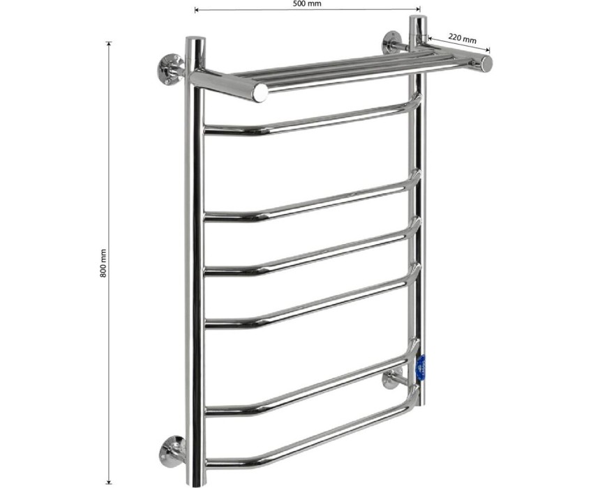 Водяной полотенцесушитель, хромированный, лесенка - трапеция с полкой, изготовлен из высокопрочной нержавеющей стали. Металл устойчив к коррозии и деформации, отлично выдерживает перепады температуры и давления в системе водоснабжения. После установки полотенцесушителя в помещении становится значительно комфортнее: уменьшается влажность, исчезает конденсат, снижается риск появления плесени. Изделие не только поддержит комфортную температуру в санузле, но и быстро просушит белье. Подключение 1". Подключается к системе горячего водоснабжения, функционирует круглый год. Габаритные размеры: высота 800 мм, ширина 500 мм, полка 220 мм, диаметр трубы 32 мм, толщина 2 мм. Комплект: полотенцесушитель, 4 крепления, кран Маевского поможет удалить воздух из системы, декоративные заглушки. Вес - 6,500 кг, объём - 0,07800 м3.