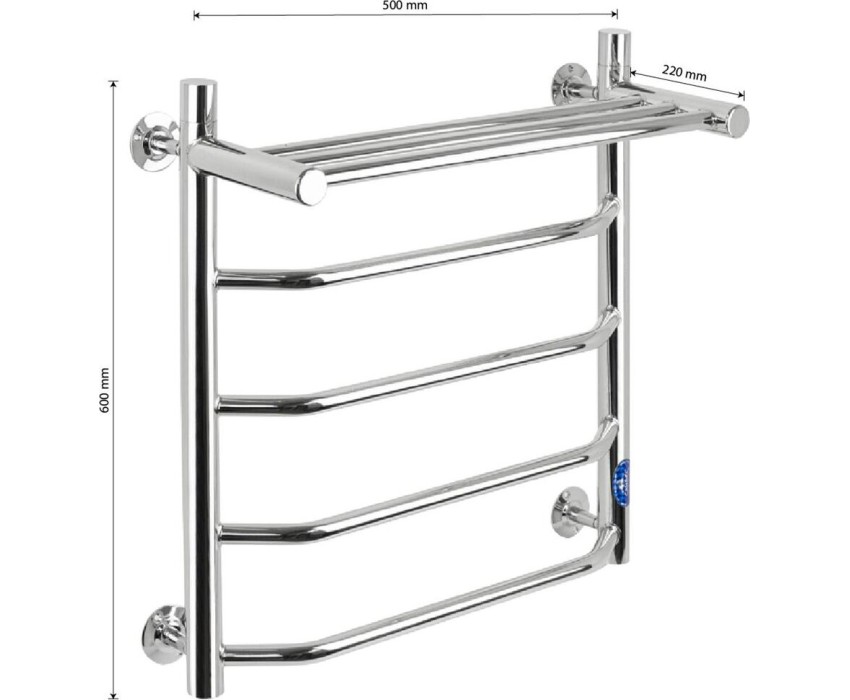 Водяной полотенцесушитель, хромированный, лесенка - трапеция с полкой, изготовлен из высокопрочной нержавеющей стали. Металл устойчив к коррозии и деформации, отлично выдерживает перепады температуры и давления в системе водоснабжения. После установки полотенцесушителя в помещении становится значительно комфортнее: уменьшается влажность, исчезает конденсат, снижается риск появления плесени. Изделие не только поддержит комфортную температуру в санузле, но и быстро просушит белье. Подключение 1". Подключается к системе горячего водоснабжения, функционирует круглый год. Габаритные размеры: высота 600 мм, ширина 500 мм, полка 220 мм, диаметр трубы 32 мм, толщина 2 мм. Комплект: полотенцесушитель, 4 крепления, кран Маевского поможет удалить воздух из системы, декоративные заглушки. Вес - 5,100 кг, объём - 0,05643 м3.