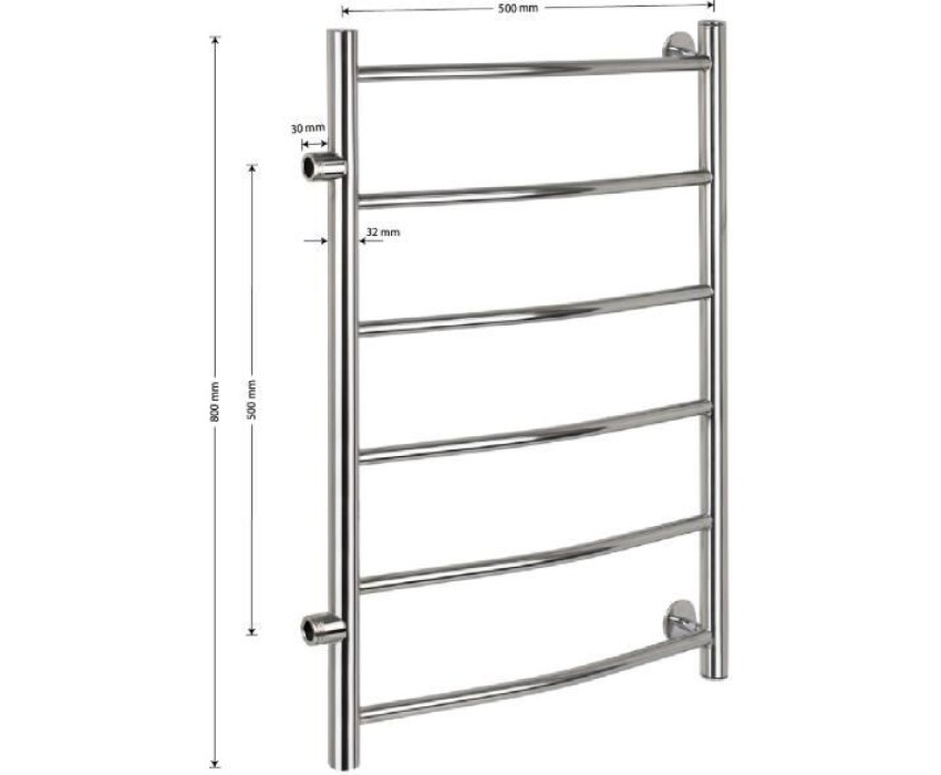САНАКС - Полотенцесушитель КЛАССИК-ДУГА, 6 перекладин, 500х800 мм, с боковым подключением м/осевое - 500 мм, труба -"1" x 2 мм, нержавеющая сталь, цвет ХРОМ. кб508050
