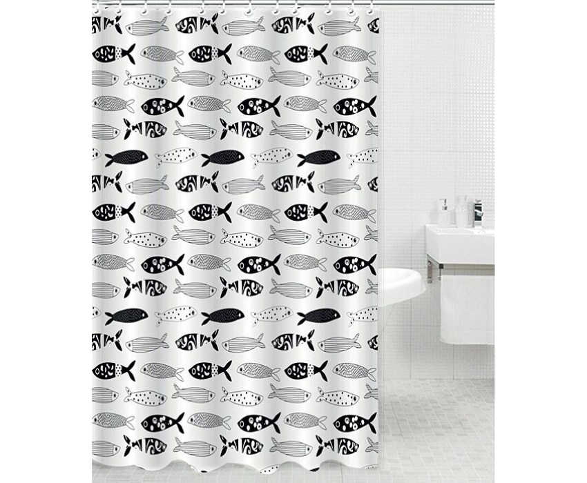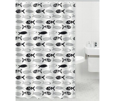 RPE-730018 Штора для ванной комнаты. Размер 180х180см. Материал Полиэстер. В комплекте 12 крючков.