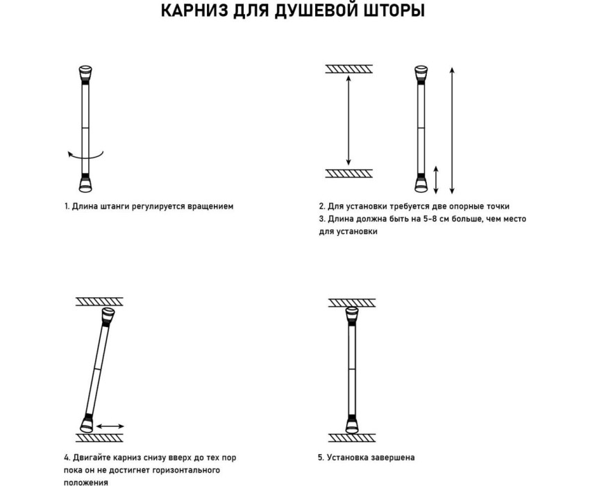Карниз в ванную комнату телескопический 1300 х 2400 мм, прямой, хромированный, изготовлен из нержавеющей стали, что делает карниз легким и прочным, отлично противостоит коррозии. Конструкция выполнена в виде телескопической трубки с наконечниками из мягкого АВS-пластика, в которой с одной стороны установлена прочная металлическая пружина, винтообразная система раздвижения, позволяющая регулировать длину. Быстро и легко устанавливается благодаря раздвижной системе. Такой вид конструкции позволяет обойтись без использования дополнительных инструментов и крепежа и не поцарапает плитку. Вес - 0.900 кг, объём - 0.004 м3.