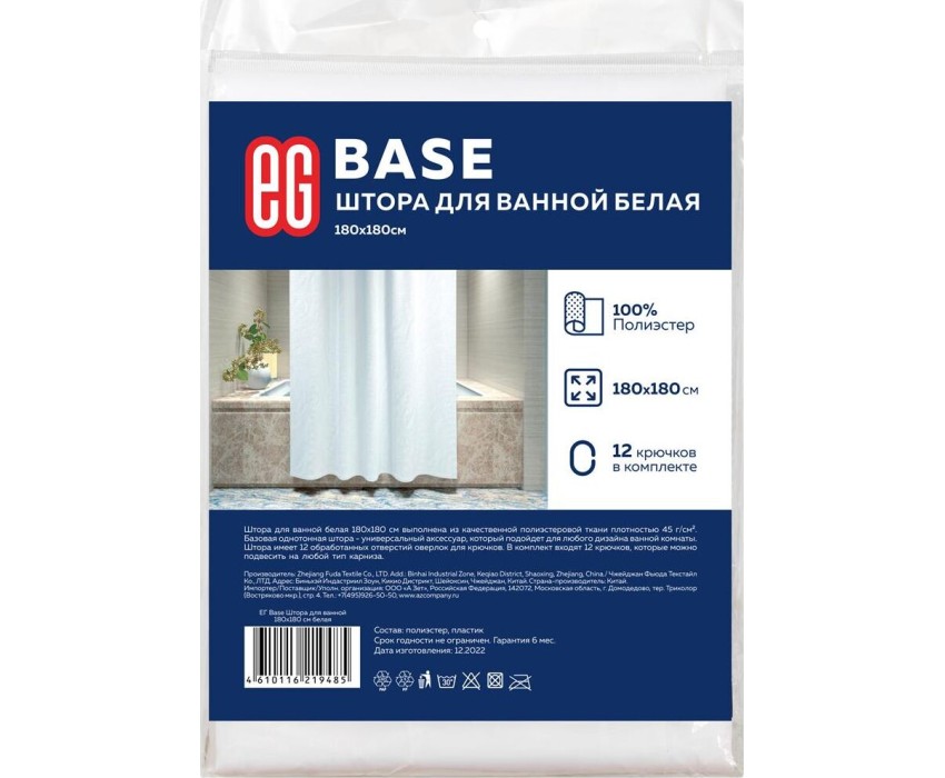 ЕГ Base Штора для ванной 180х180 см белая - 50