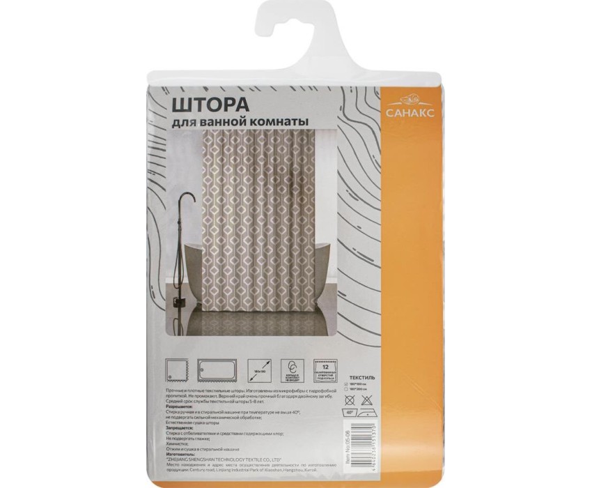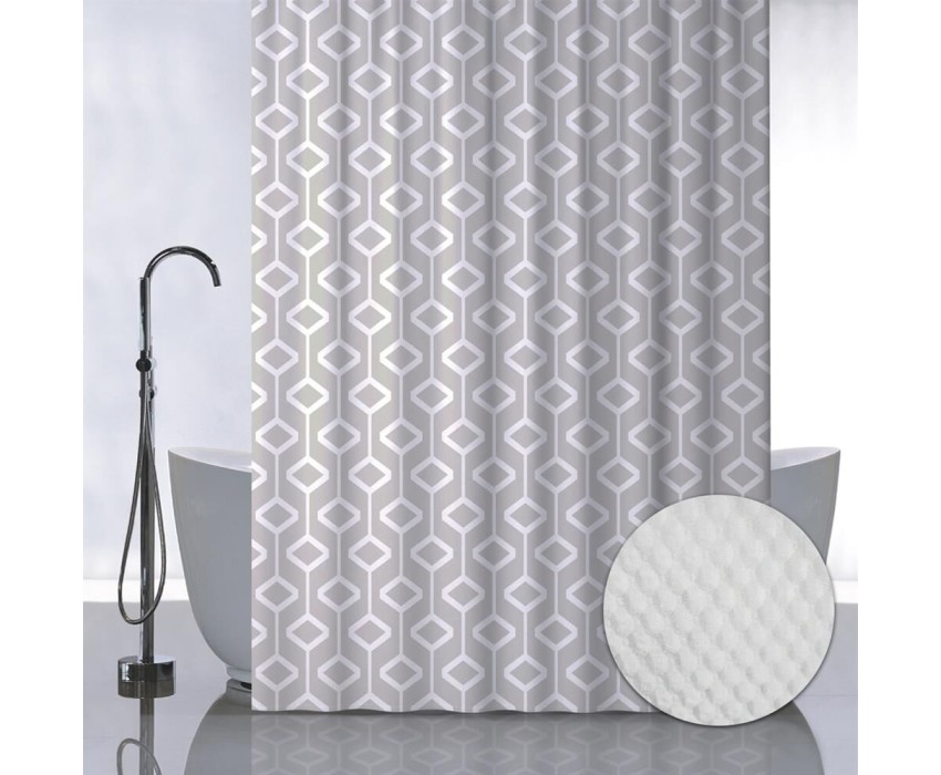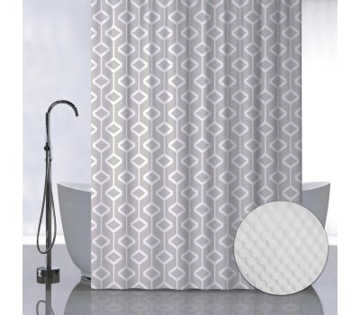 Штора для ванной САНАКС 05-06 Штора с рельефным теснением, принт БЕЖЕВЫЕ РОМБЫ, в ванную комнату, без колец, полиэстер/микрофибра, 180х180 см