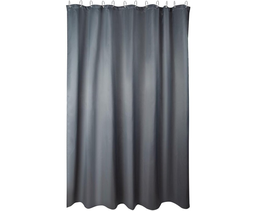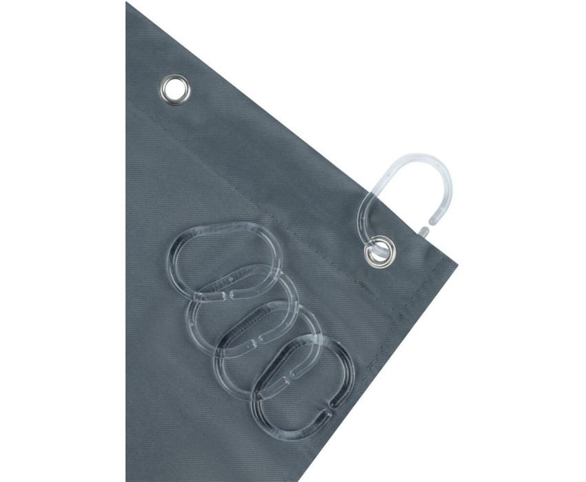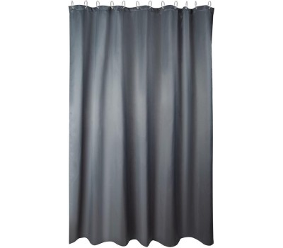 Штора для ванной комнаты Состав: полиэстер 125 г/м2, сталь, пластик Размер: 180х200 см С водоотталкивающими свойствами Фактура ткани под лён 12 стальных люверсов 12 прозрачных крючков в комплекте Цвет: серый