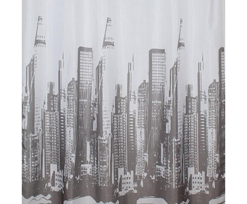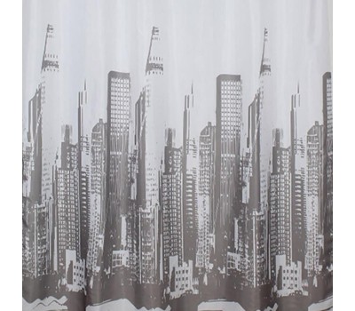 САНАКС - Штора с рисунком, НЕБОСКРЁБЫ, в ванную комнату, без колец, полиэстэр 01-13