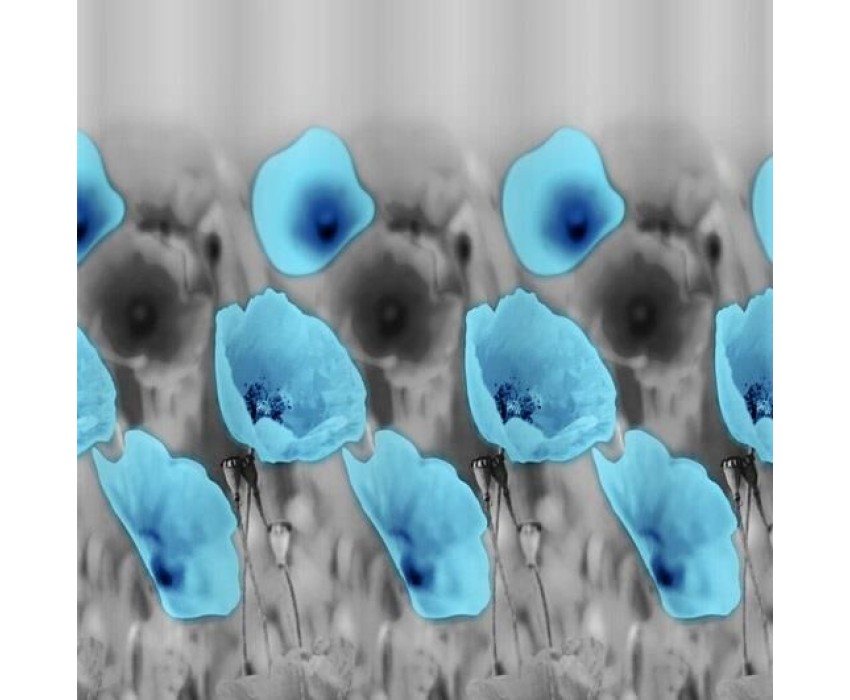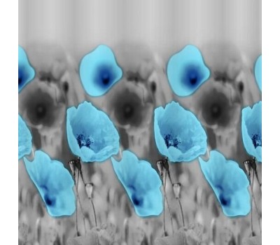 САНАКС - Штора с рисунком, ГОЛУБЫЕ МАКИ, в ванную комнату, без колец, полиэстэр 01-26