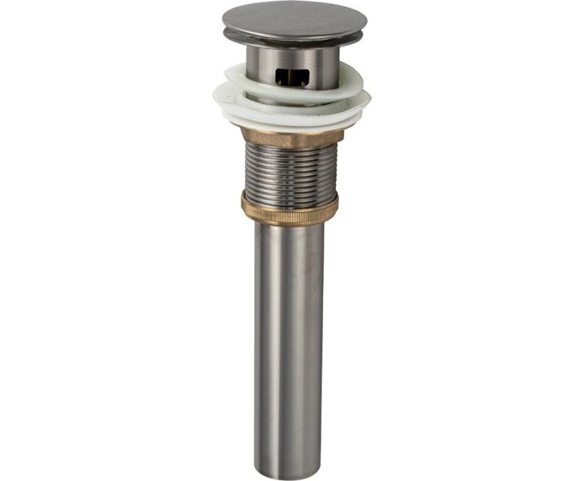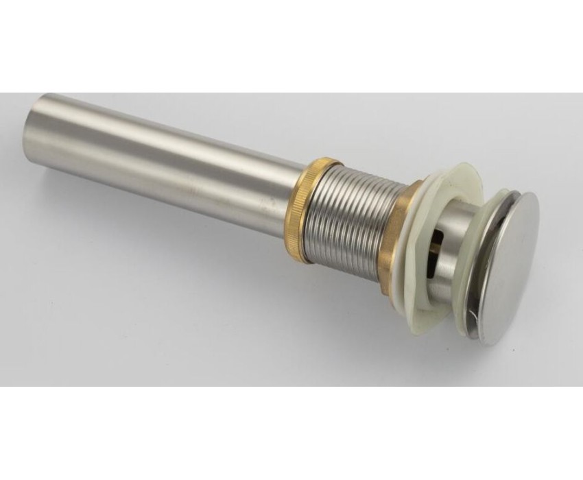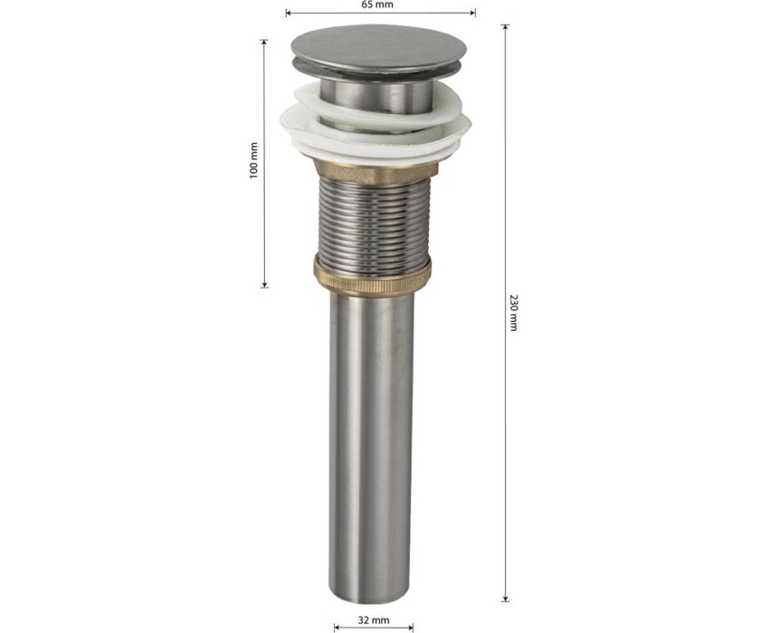 Донный клапан из нержавеющей стали, матовый,с переливом , представляет собой несложный механизм, который устанавливается непосредственно в сливное отверстие раковины и работает как пробка, с системой “Клик-Клак” 1 ¼' и с большой заглушкой клапан надежно закроет сливное отверстие раковины. Нужно использовать для умывальников с переливом . Габариты и параметры: высота 230 мм, диаметр 65 мм. Вес - 0,320 кг, объём - 0,00125 м3.