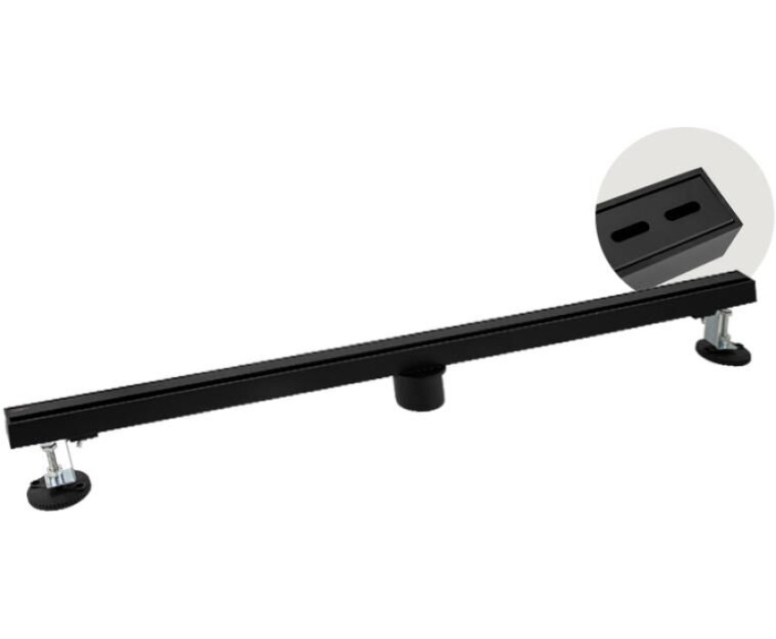 Душевой сливной трап из нержавеющей стали, линейный, вертикальный с сухим затвором, крышка двухсторонняя щелевая или с отверстиями по всей длине, цвет черный. Это специальный элемент сантехнических коммуникаций, предназначенный для отвода воды в систему канализации. Как правило, душевые трапы устанавливаются непосредственно в пол. Благодаря небольшим габаритам и высоте душевые трапы идеальны для установки в душевых зонах. Это важно для организации пространства, где нет возможности установить классическую ванну: в малогабаритных квартирах, студиях, совмещенных санузлах и т.п. Габаритные размеры: ширина 32 мм, длина 800 мм, высота до 100 мм, выход в канализацию 50 мм. Вес - 3,1 кг, объём - 0,007 м3.