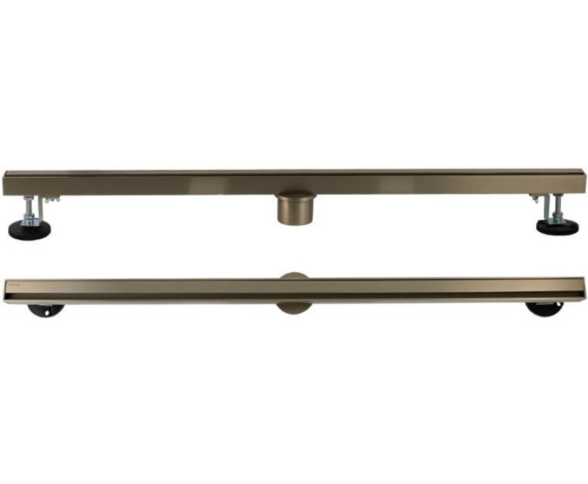 САНАКС - Трап 800х32 мм, нержавеющая сталь, линейный, вертикальный, щелевой, с сухим затвором, двухсторонняя решетка , цвет МАТОВОЕ ЗОЛОТО. 40064