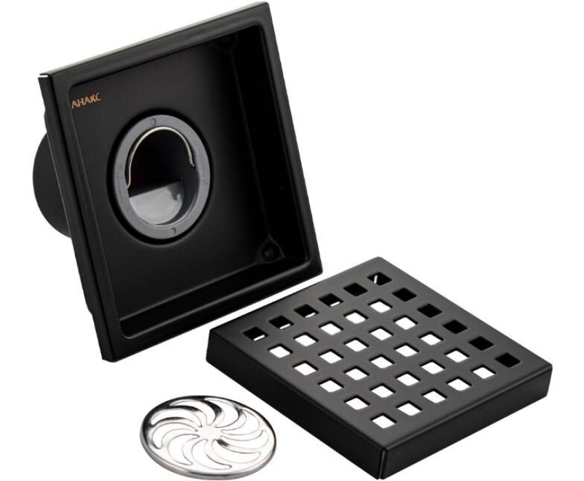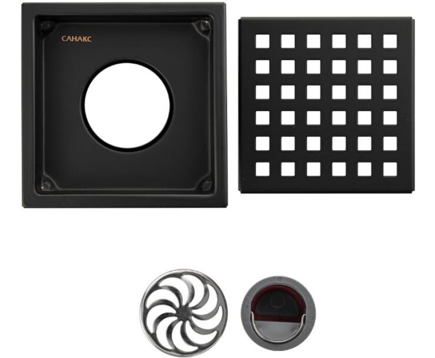 САНАКС - Трап душевой, из нержавеющей стали, 110 х 110 мм, крышка с перфорацией, СУХОЙ ЗАТВОР, вертикальный выпуск 50 мм, цвет ЧЕРНЫЙ 1181