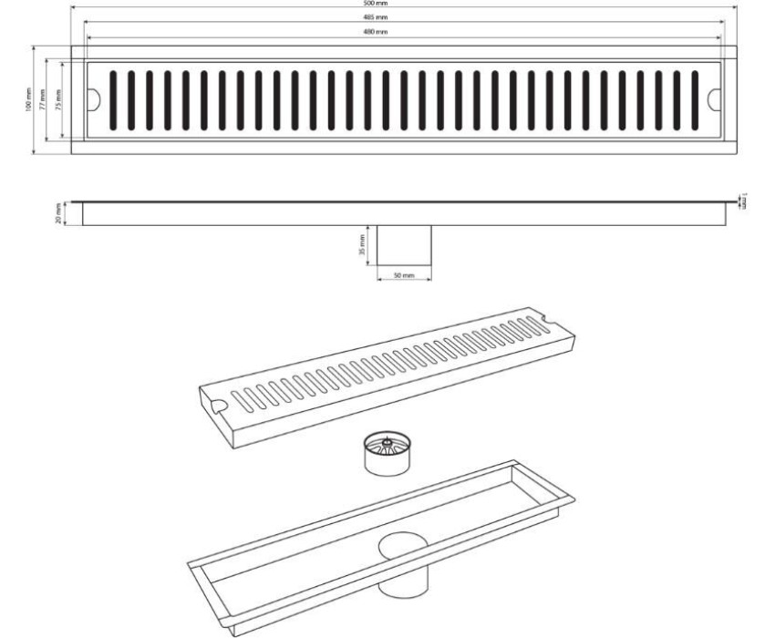Душевой сливной трап из нержавеющей стали, линейный, вертикальный с сухим мембранным затвором – это специальный элемент сантехнических коммуникаций, предназначенный для отвода воды в систему канализации. Как правило, душевые трапы устанавливаются непосредственно в пол. Благодаря небольшим габаритам и высоте душевые трапы идеальны для установки в душевых зонах. Это важно для организации пространства, где нет возможности установить классическую ванну: в малогабаритных квартирах, студиях, совмещенных санузлах и т.п. Габаритные размеры: высота 55 мм, ширина 100 мм, длина 500 мм, выход в канализацию 50 мм. Вес - 1,000 кг, объём - 0,00341 м3.