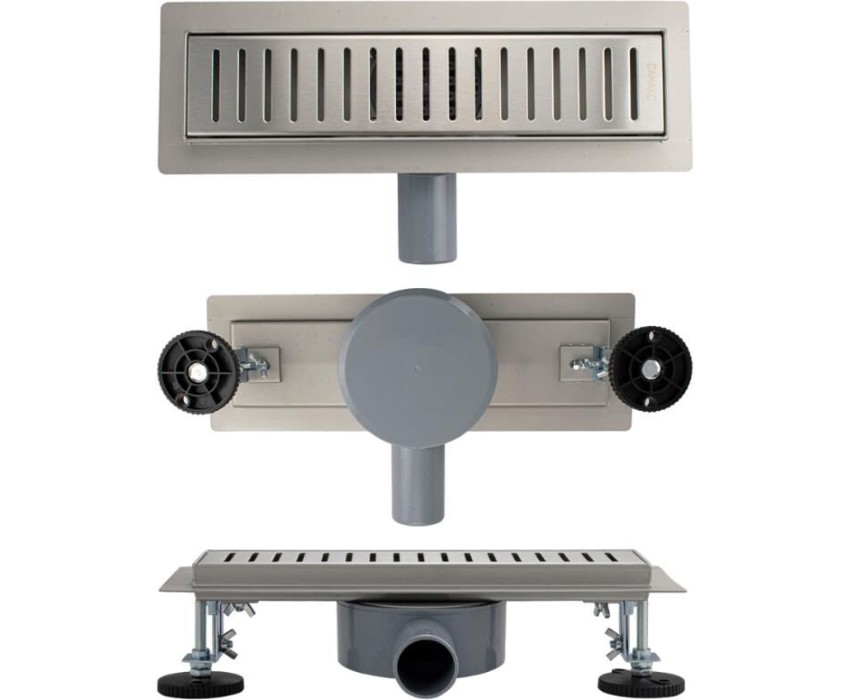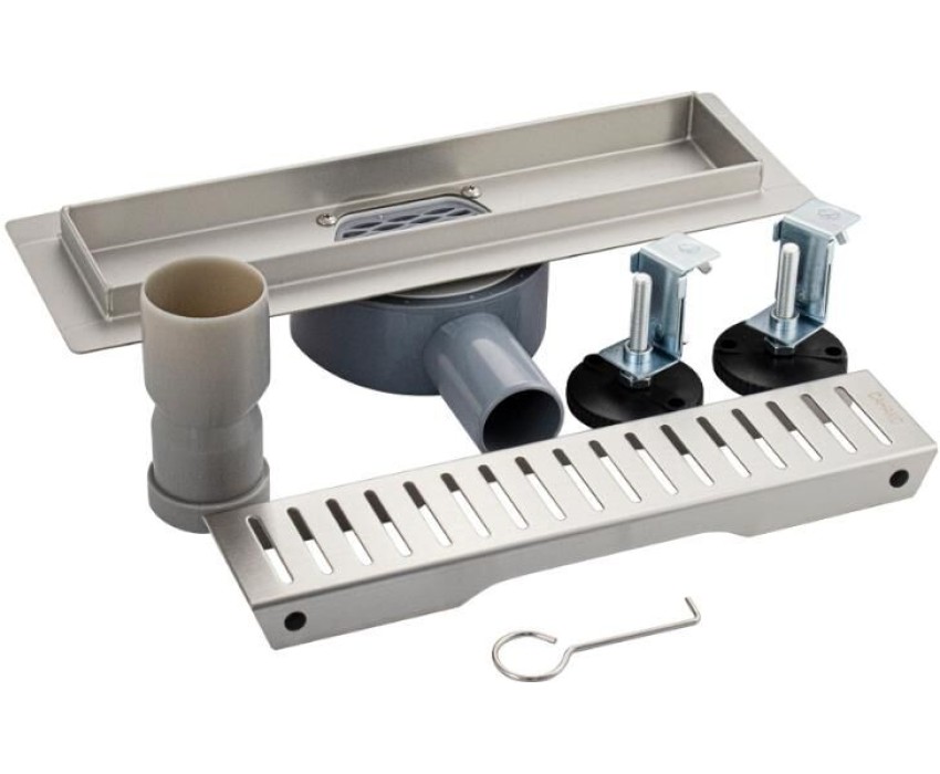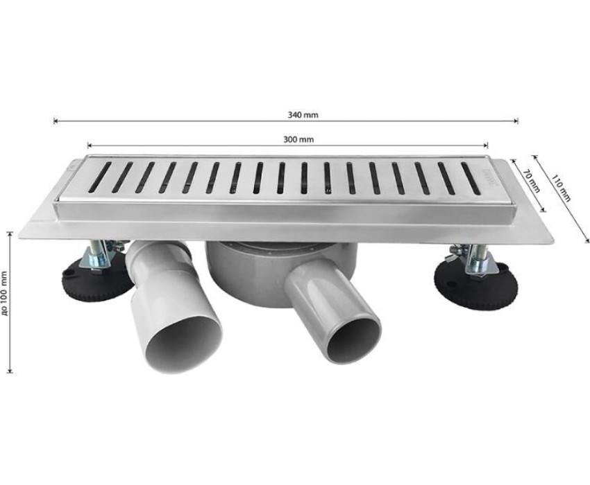 Душевой сливной трап из нержавеющей стали, линейный, горизонтальный с гидрозатвором , с регулируемыми ножками и бортиком под плитку с четырёх сторон – это специальный элемент сантехнических коммуникаций, предназначенный для отвода воды в систему канализации. Как правило, душевые трапы устанавливаются непосредственно в пол. Благодаря небольшим габаритам и высоте душевые трапы идеальны для установки в душевых зонах. Это важно для организации пространства, где нет возможности установить классическую ванну: в малогабаритных квартирах, студиях, совмещенных санузлах и т.п. Габаритные размеры: высота до 100 мм, ширина 70 мм, длина 300 мм, ширина бортика 20 мм, выход в канализацию 50 мм. В комлекте идут регулируемые ножки высотой до 10 мм от пола, вращающийся слив на 360°. Вес - 1,600 кг, объём - 0,00537 м3.