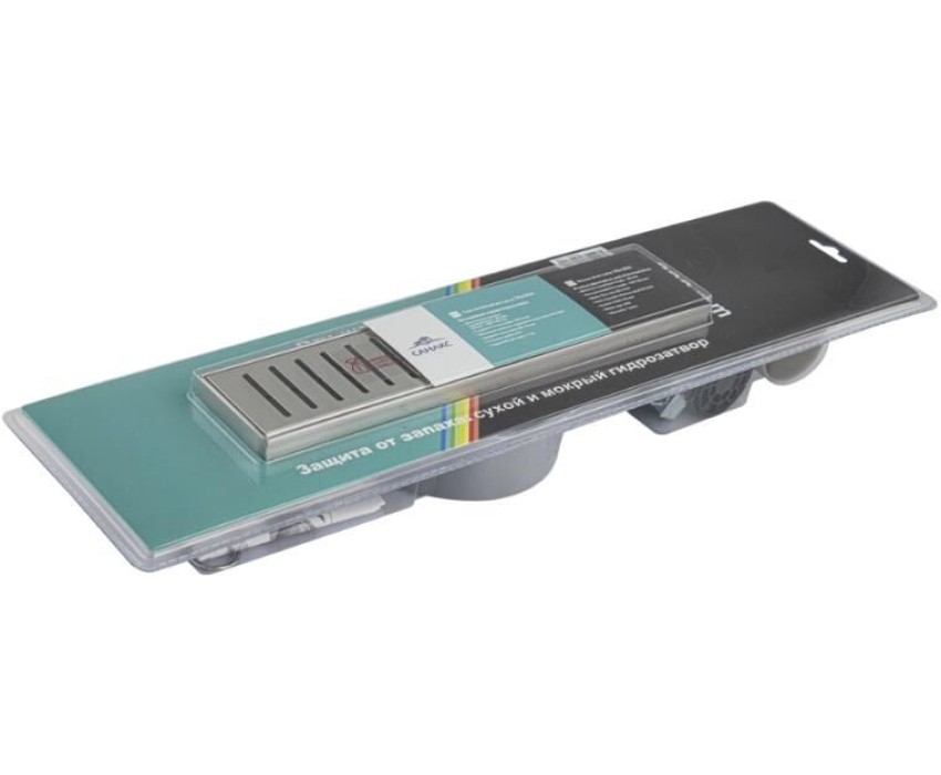 САНАКС - Трап 300 х 70 мм, с бортиком для плитки, из нержавеющей стали, горизонтальное подключение 360º, с сухим и гидрозатворами, цвет САТИН. 00036