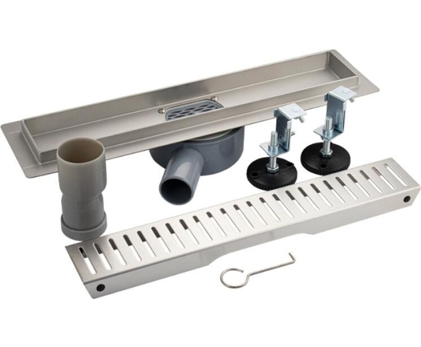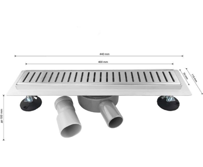 Душевой сливной трап из нержавеющей стали, линейный, горизонтальный с гидрозатвором , с регулируемыми ножками и бортиком под плитку с четырёх сторон – это специальный элемент сантехнических коммуникаций, предназначенный для отвода воды в систему канализации. Как правило, душевые трапы устанавливаются непосредственно в пол. Благодаря небольшим габаритам и высоте душевые трапы идеальны для установки в душевых зонах. Это важно для организации пространства, где нет возможности установить классическую ванну: в малогабаритных квартирах, студиях, совмещенных санузлах и т.п. Габаритные размеры: высота до 100 мм, ширина 70 мм, длина 400 мм, ширина бортика 20 мм, выход в канализацию 50 мм. В комлекте идут регулируемые ножки высотой до 10 мм от пола, вращающийся слив на 360°. Вес - 1,750 кг, объём - 0,00668 м3.