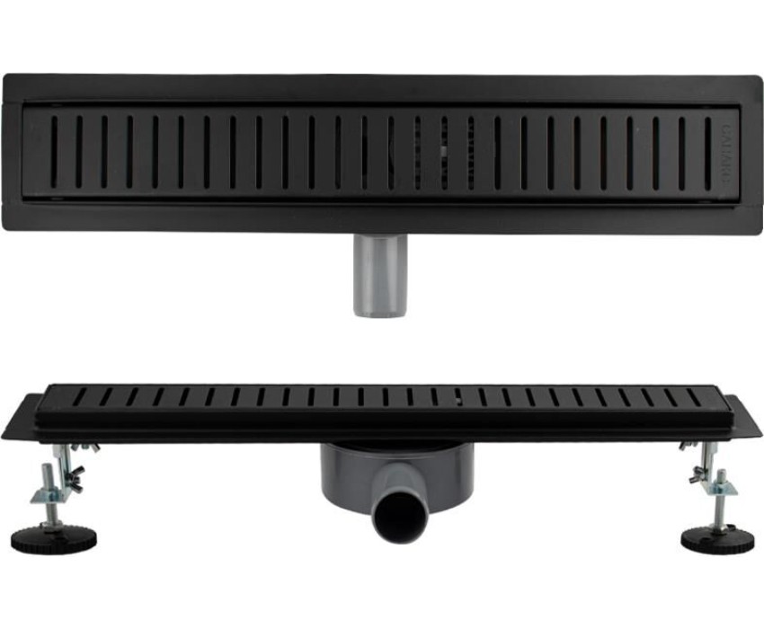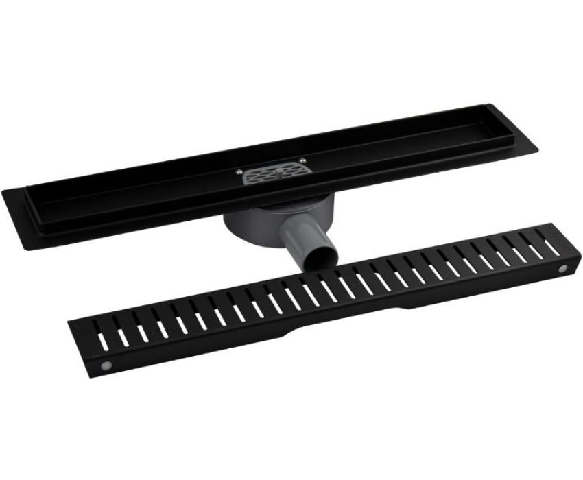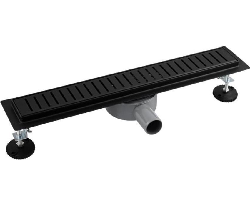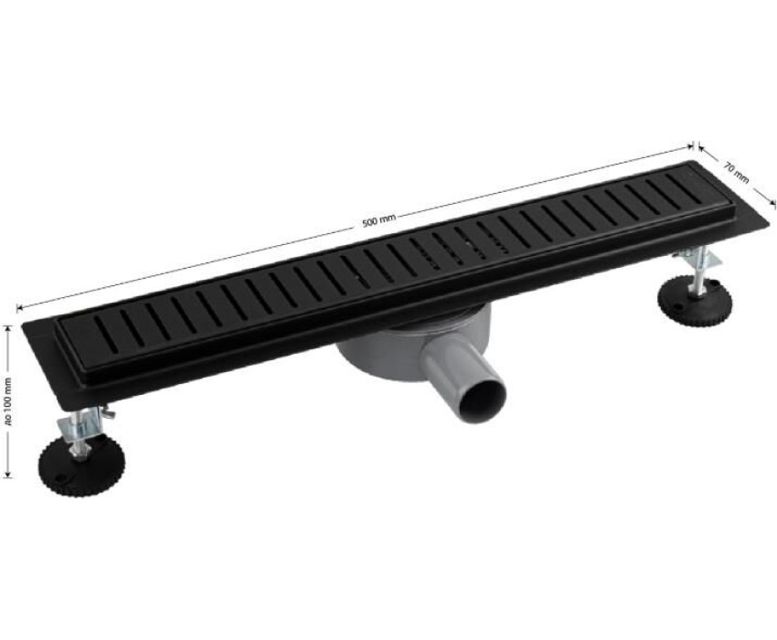 Душевой сливной трап из нержавеющей стали, чёрного цвета, линейный, горизонтальный с сухим затвором, с регулируемыми ножками и бортиком под плитку с четырёх сторон – это специальный элемент сантехнических коммуникаций, предназначенный для отвода воды в систему канализации. Как правило, душевые трапы устанавливаются непосредственно в пол. Благодаря небольшим габаритам и высоте душевые трапы идеальны для установки в душевых зонах. Это важно для организации пространства, где нет возможности установить классическую ванну: в малогабаритных квартирах, студиях, совмещенных санузлах и т.п. Габаритные размеры: высота до 100 мм, ширина 70 мм, длина 500 мм, ширина бортика 20 мм, выход в канализацию 50 мм. В комлекте идут регулируемые ножки высотой до 10 мм от пола, вращающийся слив на 360°. Вес - 2,250 кг, объём - 0,00920 м3.