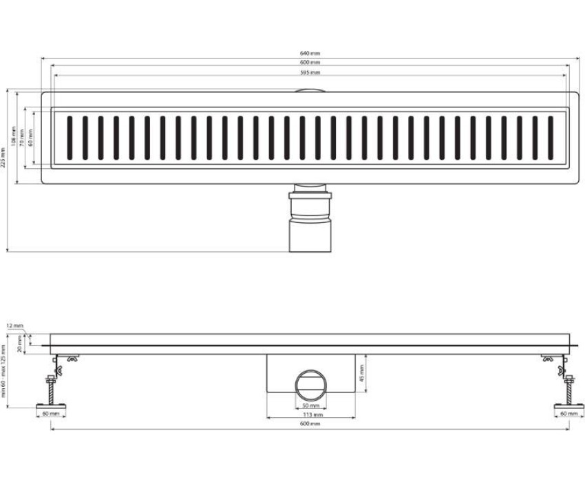 Душевой сливной трап из нержавеющей стали, линейный, горизонтальный с гидрозатвором , с регулируемыми ножками и бортиком под плитку с четырёх сторон – это специальный элемент сантехнических коммуникаций, предназначенный для отвода воды в систему канализации. Как правило, душевые трапы устанавливаются непосредственно в пол. Благодаря небольшим габаритам и высоте душевые трапы идеальны для установки в душевых зонах. Это важно для организации пространства, где нет возможности установить классическую ванну: в малогабаритных квартирах, студиях, совмещенных санузлах и т.п. Габаритные размеры: высота до 100 мм, ширина 70 мм, длина 600 мм, ширина бортика 20 мм, выход в канализацию 50 мм. В комлекте идут регулируемые ножки высотой до 10 мм от пола, вращающийся слив на 360°. Вес - 2,350 кг, объём - 0,00943 м3.