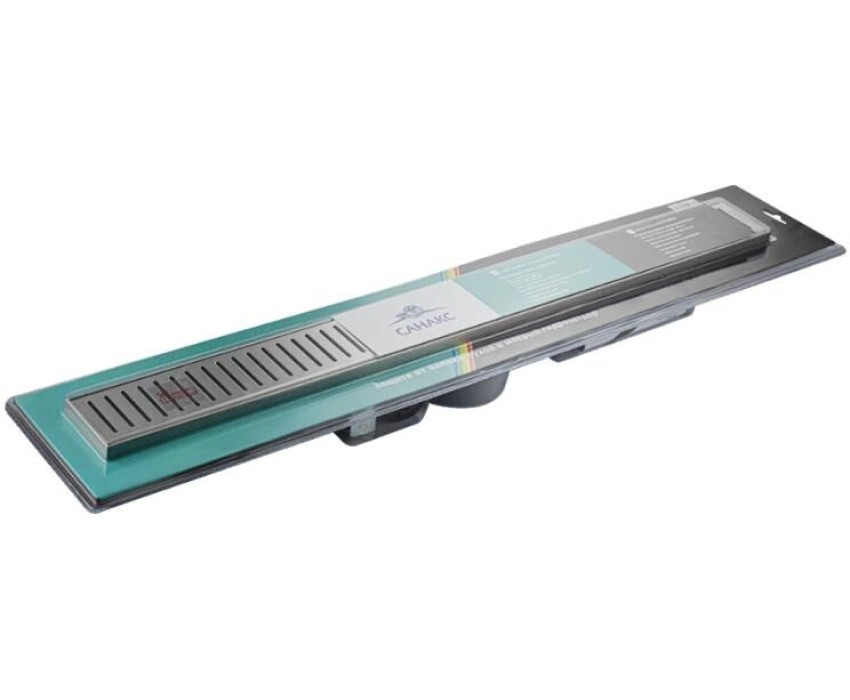 САНАКС - Трап 800 х 70 мм, с бортиком для плитки, из нержавеющей стали, горизонтальное подключение 360º, с сухим и гидрозатворами, цвет САТИН. 00140