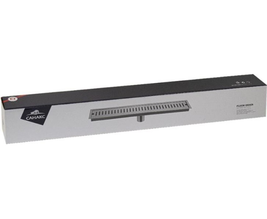 САНАКС - Трап линейный 800 х 100 мм, вертикальный выпуск с гидрозатвором, с верхним бортиком, из нержавеющей стали марки SUS 304, цвет САТИН. 00051