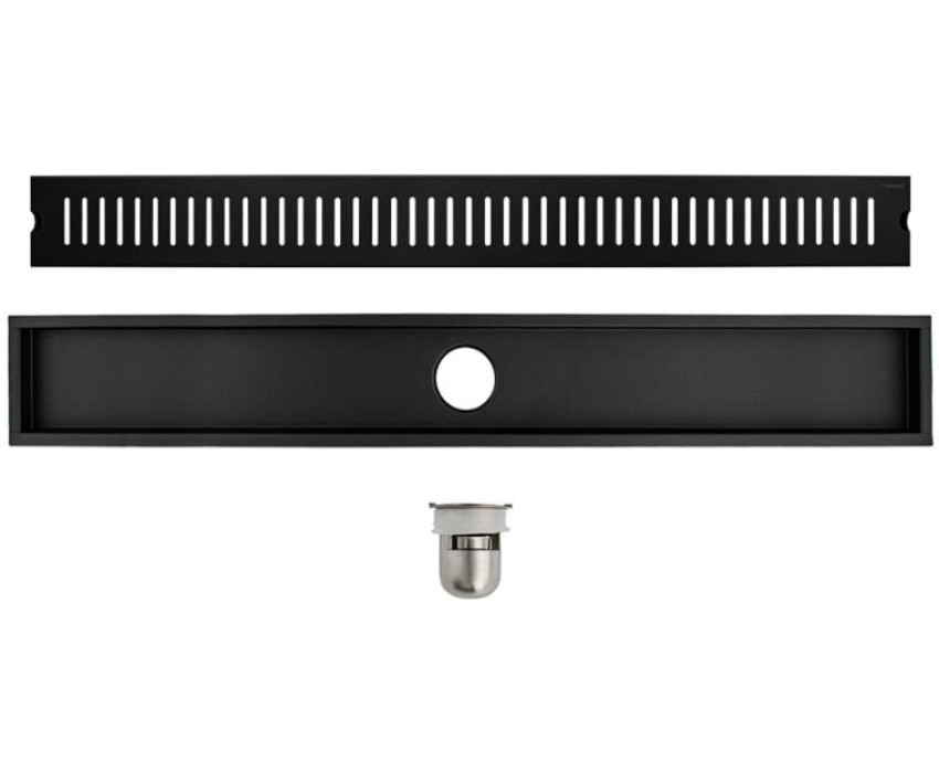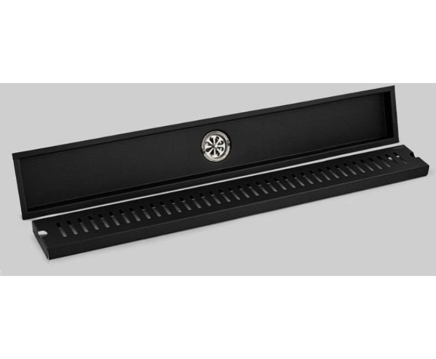 САНАКС - Трап линейный 800 х 100 мм, вертикальный выпуск с гидрозатвором, с верхним бортиком, из нержавеющей стали марки SUS 304, цвет ЧЁРНЫЙ. 00051-B
