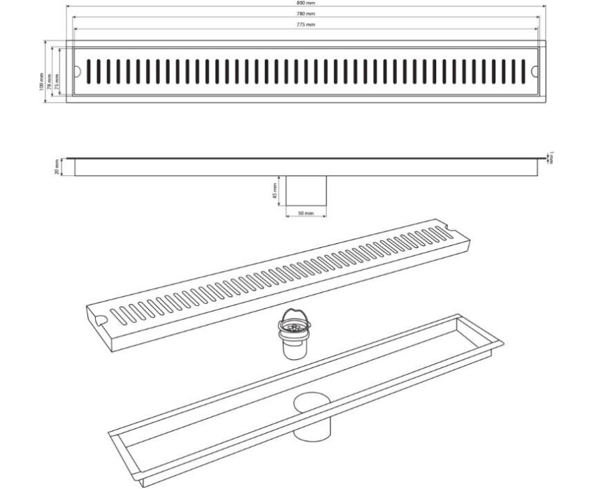 Душевой сливной трап из нержавеющей стали, линейный, вертикальный с гидрозатвором – это специальный элемент сантехнических коммуникаций, предназначенный для отвода воды в систему канализации. Как правило, душевые трапы устанавливаются непосредственно в пол. Благодаря небольшим габаритам и высоте душевые трапы идеальны для установки в душевых зонах. Это важно для организации пространства, где нет возможности установить классическую ванну: в малогабаритных квартирах, студиях, совмещенных санузлах и т.п. Габаритные размеры: высота 70 мм, ширина 100 мм, длина 800 мм, выход в канализацию 50 мм. Вес - 1,500 кг, объём - 0,00721 м3.