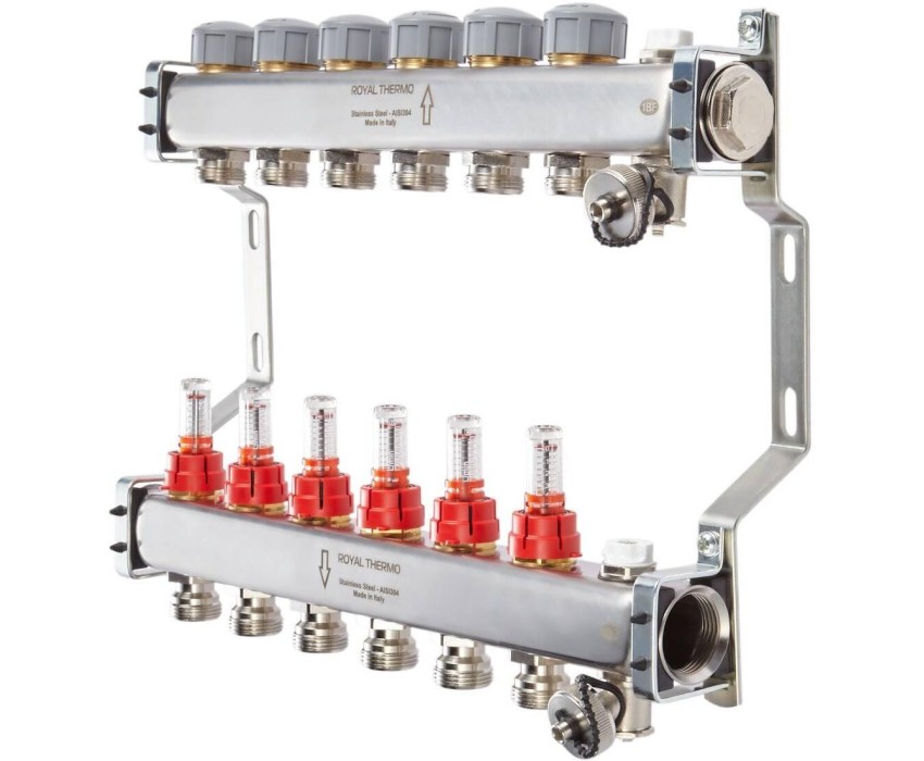 Сантехническая арматура ROYAL THERMO Коллектор нерж. в сборе с расходомерами 1" ВР-3/4" НР, 2 выхода