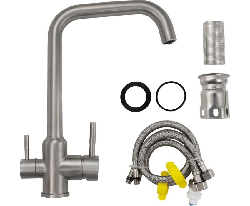 Смеситель кухонный MAGNUS 91115 Смеситель кухонный Г-образный гусак шаровый с двойным выпуском воды для фильтра нерж.ст