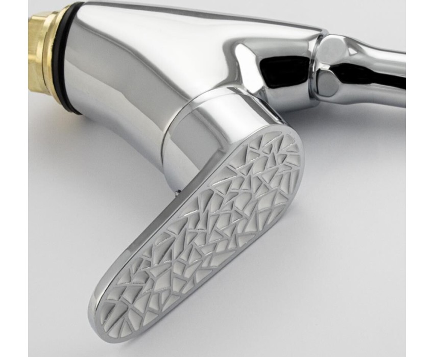 Смеситель для кухни BRIMIX 3274 Смеситель кухонный, шаровый, боковой, ручка с белой мозаикой, с гибким изливом БЕЛОГО цвета