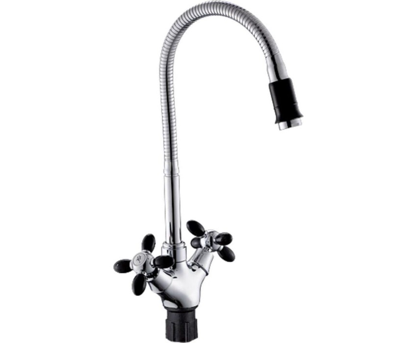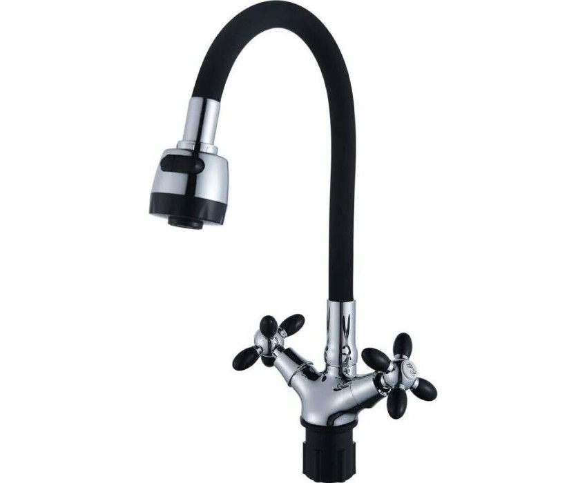 Смеситель АНТЕЙ 5770716-ANT Радуга Смеситель д/кухни с 2-мя рукоятками, с силиконовым изливом, креп.гайка, черный