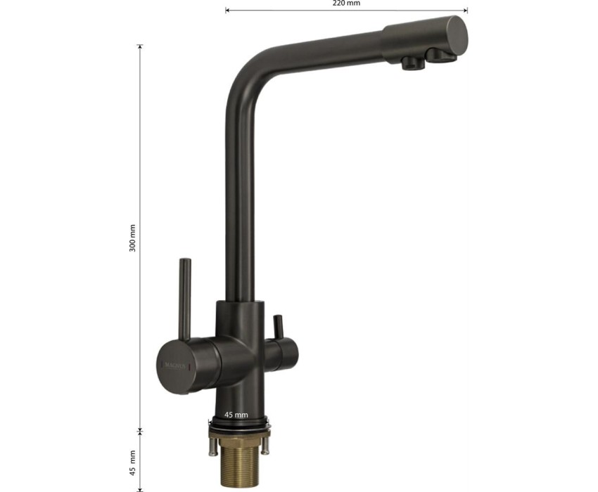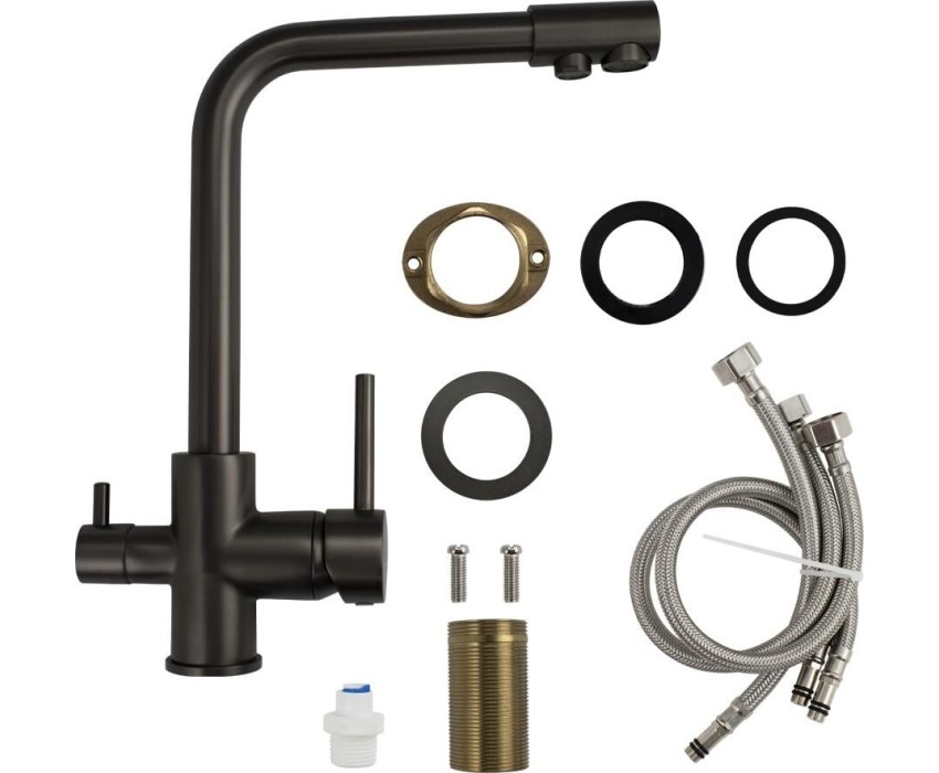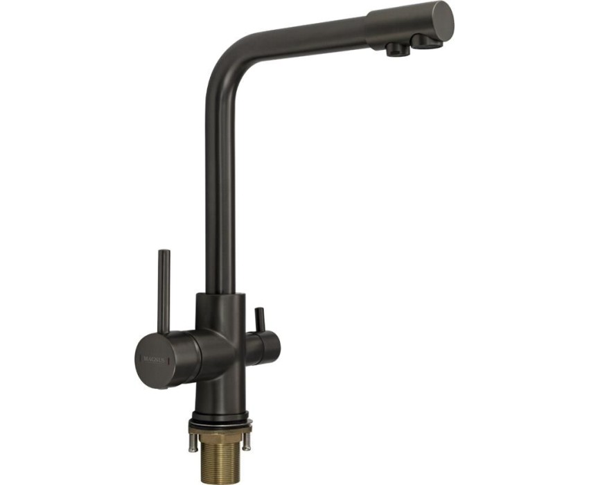 Смеситель для кухни MAGNUS 8247 Смеситель кухонный ГРАФИТ, шаровый, с двойным выпуском воды для фильтра, материал латунь