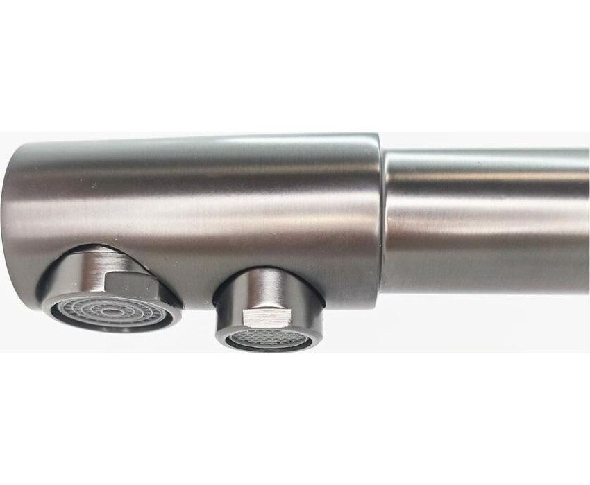 Смеситель для кухонной мойки и раковин, с двойным выпуском воды для фильтра, литой корпус, цвет - ГРАФИТ, из латуни, с высоким Г-образным изливом, шаровый, с отдельным переключением от фильтра и проточной воды. Крепление резьба - гайка, картридж d = 40 мм, ручка шток. Аэратор для экономии воды. Такая модель может использоваться на домашней кухне, на даче, в медицинских учреждениях и общественных местах. Габаритные размеры: высота 300 мм, длина 220 мм, размер посадочного седла 45 мм, длина резьбы 45 мм, длина подводки 450 мм. Вес - 2.400 кг, объём - 0,008 м3. В комплекте паспорт, корпус с изливом, подводка 1/2, крепеж, набор прокладок.