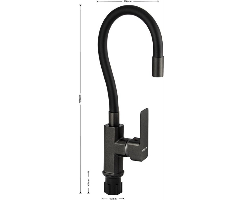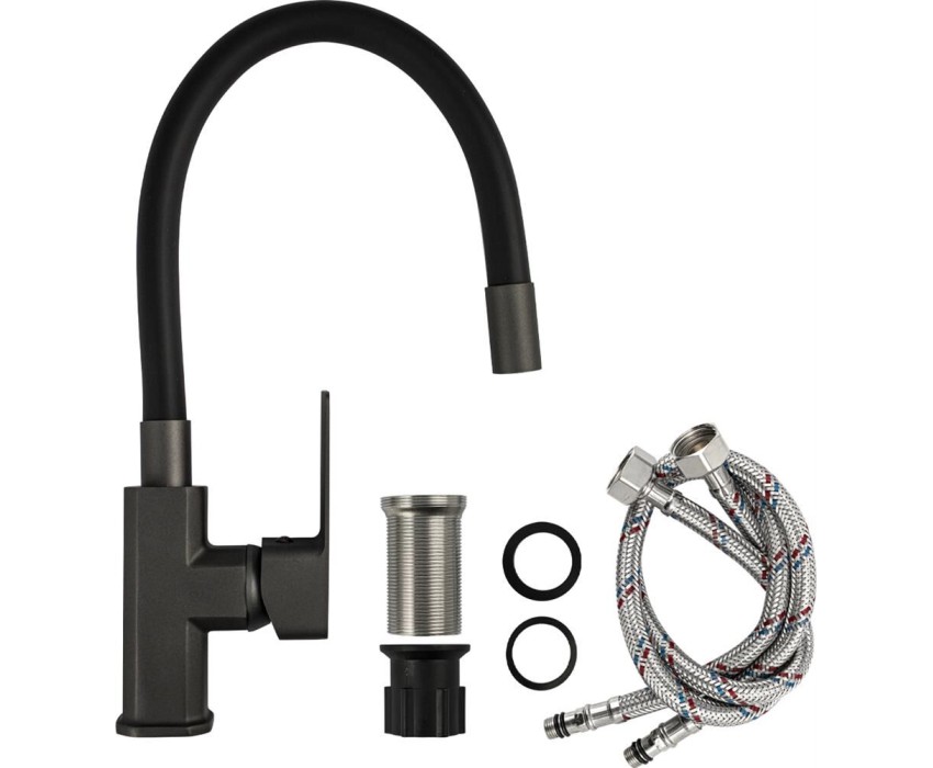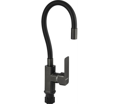 Смеситель для кухни FABIA 9657 Смеситель для кухни, шаровый, с гибким черным изливом, корпус квадратный, цвет ГРАФИТ