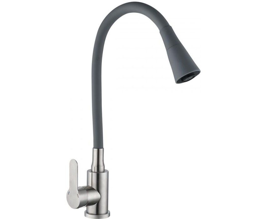 Смеситель АНТЕЙ 577032 Садко Смеситель д/кухни шар. с силиконовым изливом серый нерж.сталь 1/11