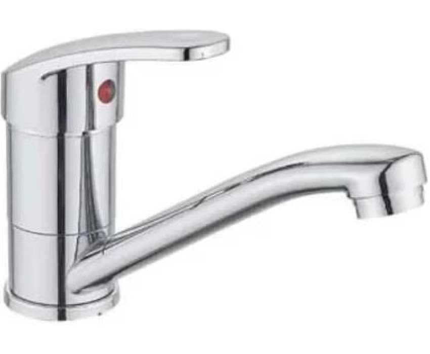 "Смеситель для кухни с коротким изливом, GR - Материал: прочный сплав алюминия с кремнием - Покрытие: никель-хромовое - Цвет: хром - Картридж: ø35мм, пластиковая с керамическими пластинами, брендированный GR - Излив: короткий, длина 185мм, высота - 95мм - Аэратор: пластиковый, съемный, наруж. резьба, ø24мм - Крепление: шпилька (1шт.) В комплекте: паспорт (1шт.)"