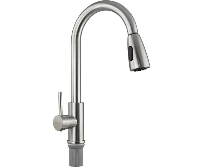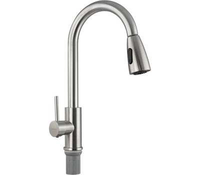 САНАКС - Смеситель кухонный, шаровый, С - образный излив вытяжной, из нержавеющей стали марки SUS 304, цвет САТИН. 13069