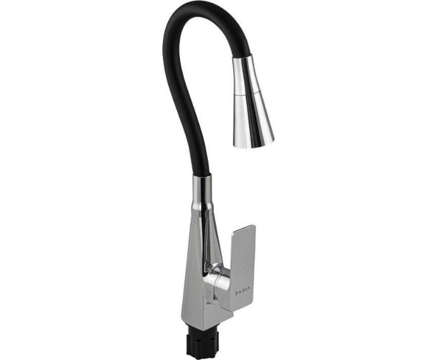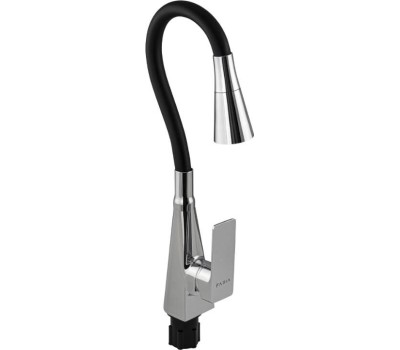 FABIA - Смеситель для кухни, шаровый, с гибким черным изливом, корпус конус, цвет ХРОМ. 4112