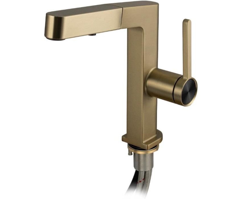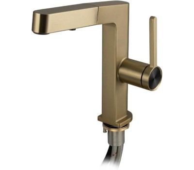 МАГНУС - Смеситель кухонный, шаровый, Г - образный излив вытяжной, корпус из латуни под цвет матового золота 8232