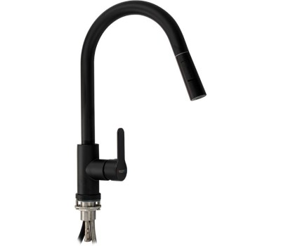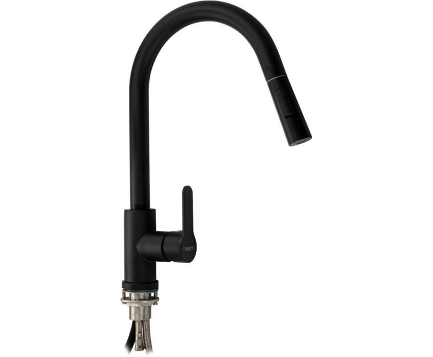 МАГНУС - Смеситель кухонный, шаровый, черного цвета, С - образный излив вытяжной, из нержавеющей стали марки 304 9130
