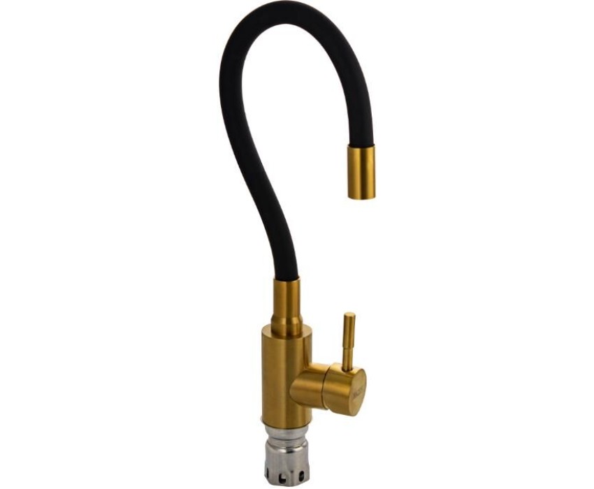 МАГНУС - Смеситель для кухни, с гибким изливом черного цвета, корпус из нержавеющей стали, цвет МАТОВОЕ ЗОЛОТО 9267