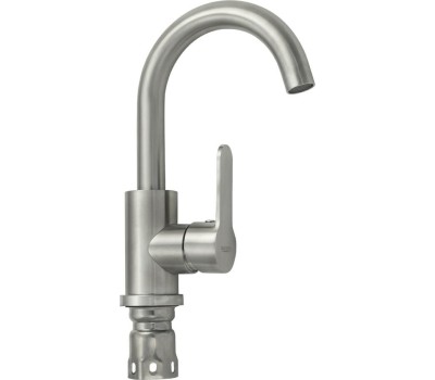 Смеситель для раковины, матовый литой корпус, из нержавеющей стали марки 304, с высоким поворотным С-образным изливом, ручка литая, шаровый. Крепление резьба - гайка, картридж d = 35 мм, аэратор для экономии воды. Такая модель может использоваться на домашней кухне, на даче, в медицинских учреждениях и общественных местах Габаритные размеры: высота 230 мм, длина 180 мм, диаметр посадочного седла 50 мм, длина резьбы 60 мм, длина подводки 500 мм. Вес - 1,400 кг, объём - 0,00310 м3. В комплекте паспорт, корпус, подводка 1/2, крепеж, набор прокладок.