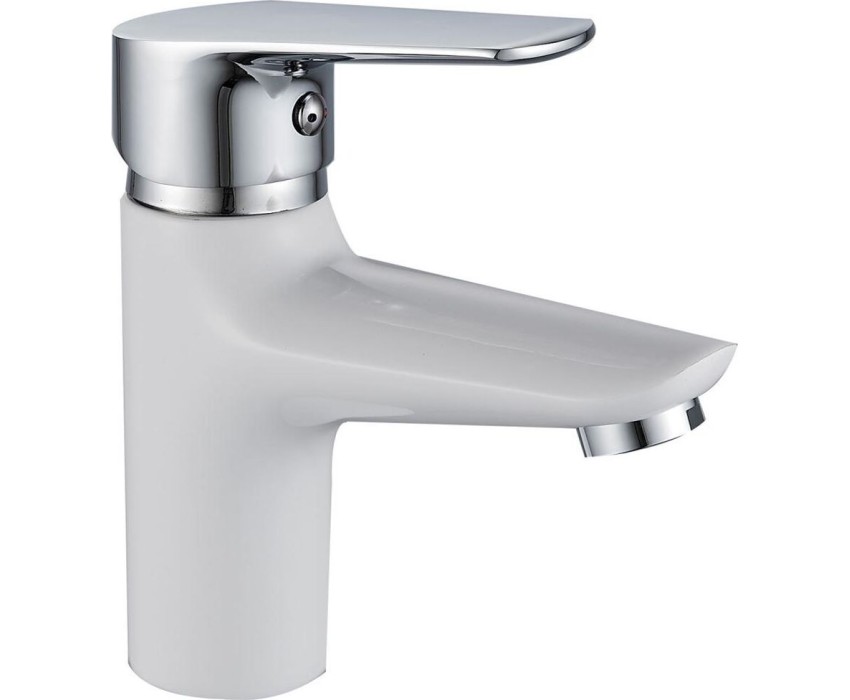 Смеситель для умывальника - Цвет: белый+хром - Картридж: Ø35 мм - Аэратор: пластиковый, съемный - Излив: короткий, поворотный В комплекте: гибкая подводка 1/2" дюйма (350 мм), монтажный комплект - гайка (цинк или латунь)