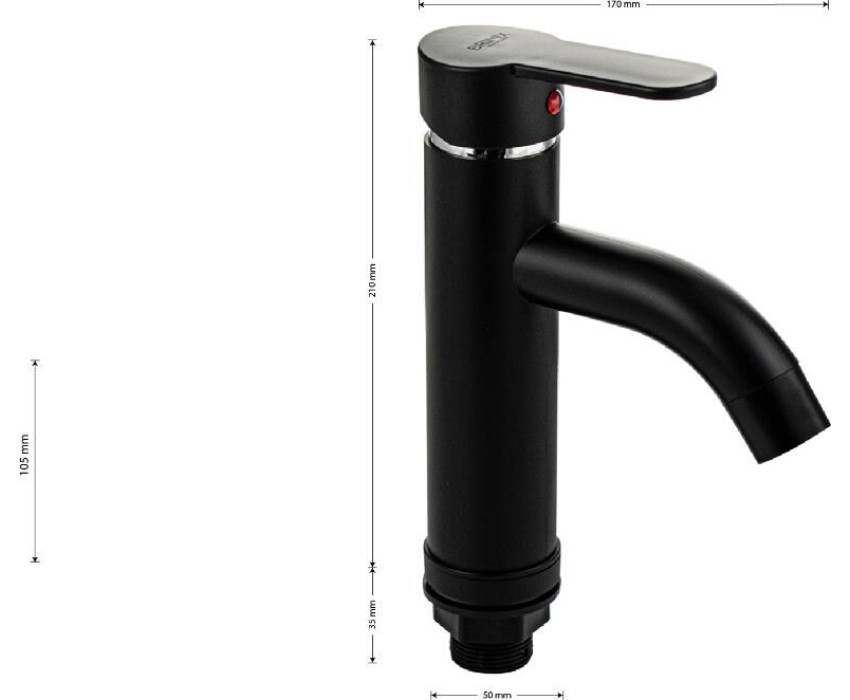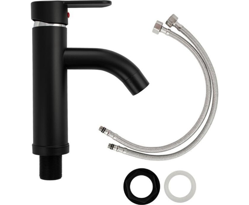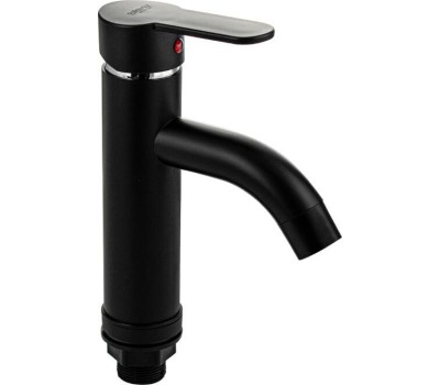 Смеситель для раковины, из высокопрочного пластика АБС, ЧЕРНЫЙ с коротким изливом, литой корпус, литая ручка, шаровый. Крепление резьба - гайка, картридж d = 40 мм. хромированный аэратор для экономии воды. Габаритные размеры: высота 210 мм, длина 170 мм, диаметр посадочного седла 50 мм, длина резьбы 35 мм, длина подводки 450 мм. Вес - 0,62 кг, объём - 0,0025 м3. В комплекте паспорт, корпус, пластиковая подводка с латунными штуцерами 1/2, крепеж, набор прокладок.